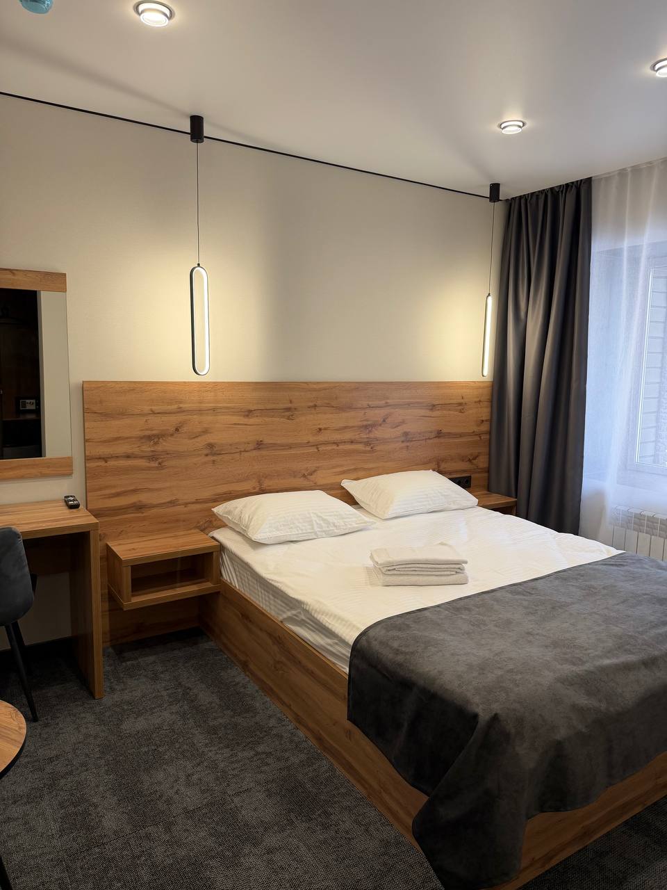 Двухместный номер с 2-х спальной кроватью. С одним окном. Благородство номеру придает стильная мебель, кровать с ортопедическим матрасом премиум класса, прикроватная тумбочка,письменный стол, стул, зеркало, телевизор, холодильник, чайник, белоснежное постельное белье из сатина высшего качества, подушки и одеяла из лебяжьего пуха. Все это сделают Ваш отдых приятным и комфортным. Доплата за второго гостя 600 руб. Оснащение номера: - Холодильник- Журнальный столик- Фен - Косметическое зеркало и косметические принадлежности в ванной комнате - Электрический чайник + чайная пара - Стаканы, Чай, вода негазированная бесплатно - Махровые полотенца и халаты - Оснащены противопожарными датчиками - ЖК телевизор - Душ